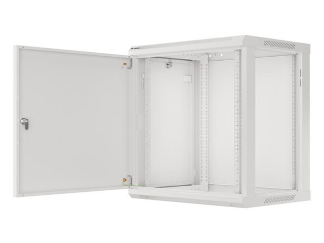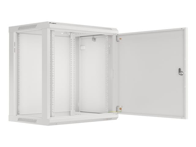 Szafa wisząca jednosekcyjna Lanberg WF01-6412-00S to rozwiązanie przeznaczone do budowy sieci, montażu okablowania oraz sprzętu w rozmiarze 19 o maksymalnym łącznym udźwigu do 60 kg. Może być stosowana w sieciach i serwerowniach zarówno w małych, jak i średnich firmach. Sprawdzi się również w instalacjach niskoprądowych takich jak sieci telewizji kablowych, systemy alarmowe, przeciwpożarowe, kontroli dostępu oraz systemy monitoringu CCTV i IP. Dzięki odpowiedniej konstrukcji, szafa umożliwia łatwy, samodzielny montaż. Charakteryzuje się szczelnością IP20, otwieranymi przednimi drzwiami z możliwością obrotu do 180°, wyposażonymi w zamek, zdejmowanymi bocznymi panelami (z zamkami w zestawie). Szafa posiada możliwość wprowadzenia okablowania poprzez górny i dolny panel. Całość wykonana jest z wysokiej jakości stali walcowanej, a dzięki konstrukcji do samodzielnego montażu (flat pack) znajduje się w płaskim opakowaniu co ułatwia transport. Dodatkowo w przesyłce załączone są dodatkowe akcesoria do mocowania szyn nośnych, śruby M6 oraz zaślepki paneli wejściowych.