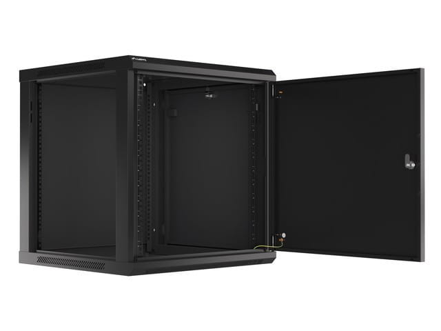 Szafa wisząca jednosekcyjna Lanberg WF01-6612-00B to rozwiązanie przeznaczone do budowy sieci, montażu okablowania oraz sprzętu w rozmiarze 19 o maksymalnym łącznym udźwigu do 60 kg. Może być stosowana w sieciach i serwerowniach zarówno w małych, jak i średnich firmach. Sprawdzi się również w instalacjach niskoprądowych takich jak sieci telewizji kablowych, systemy alarmowe, przeciwpożarowe, kontroli dostępu oraz systemy monitoringu CCTV i IP. Dzięki odpowiedniej konstrukcji, szafa umożliwia łatwy, samodzielny montaż. Charakteryzuje się szczelnością IP20, otwieranymi przednimi drzwiami z możliwością obrotu do 180°, wyposażonymi w zamek, zdejmowanymi bocznymi panelami (z zamkami w zestawie). Szafa posiada możliwość wprowadzenia okablowania poprzez górny i dolny panel. Całość wykonana jest z wysokiej jakości stali walcowanej, a dzięki konstrukcji do samodzielnego montażu (flat pack) znajduje się w płaskim opakowaniu co ułatwia transport. Dodatkowo w przesyłce załączone są dodatkowe akcesoria do mocowania szyn nośnych, śruby M6 oraz zaślepki paneli wejściowych.