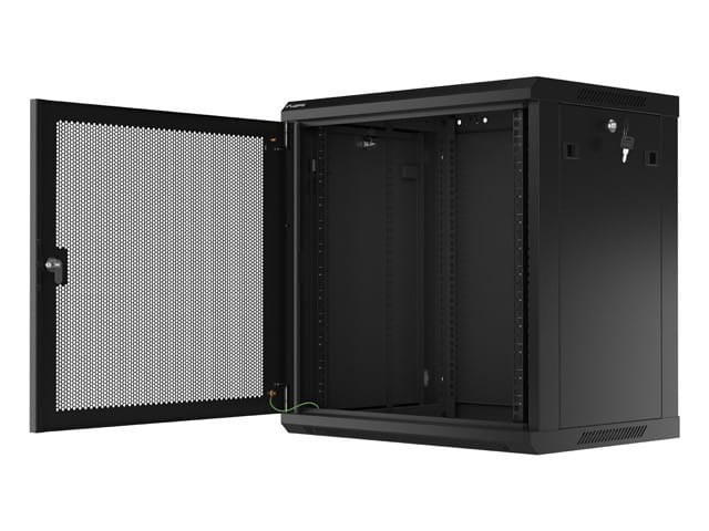 Szafa wisząca 19 cali 12U 600x450 drzwi perforowane (flat pack) czarna