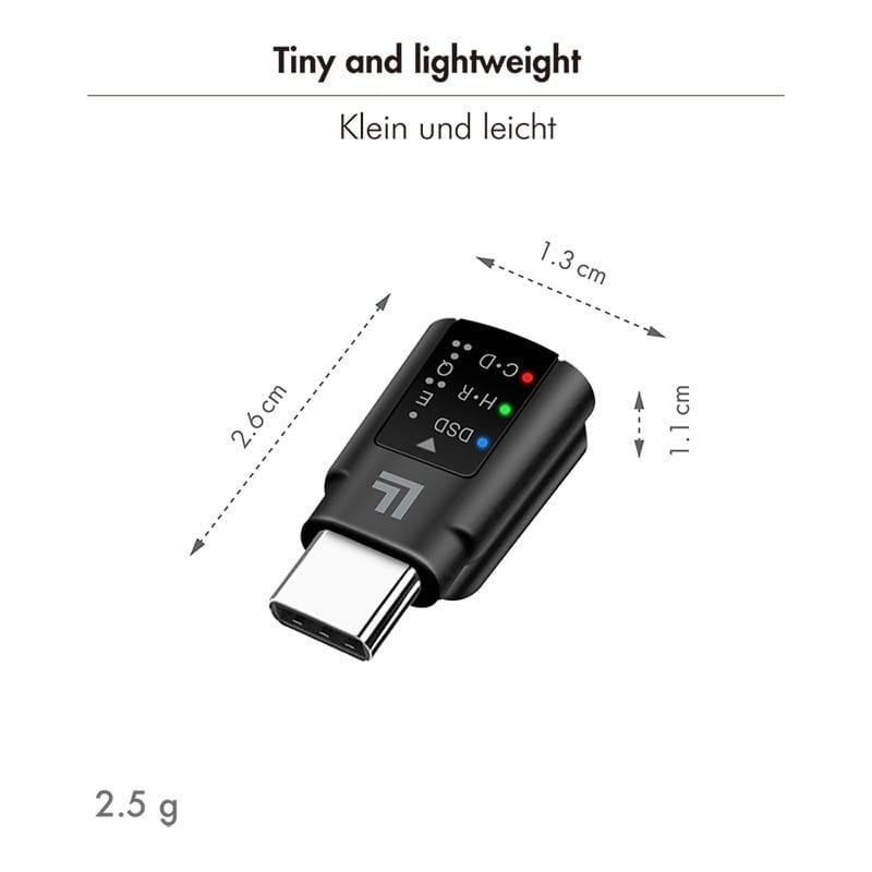 Pozostałe parametry: Złącze 1: USB-C (męskie) Złącze 2: 3,5 mm stereo jack (4-Pin, TRRS) (żeńskie) Zgodność z specyfikacją USB Audio Device Class 2.0 Zdolność napędzania słuchawek: 16-300ohm Tryby equalizera Sterowanie w linii z obsługą standardów CTIA oraz OMTP DAC: 384KHz/32bit i DSD128 dla dźwięku HiFi o 115 db SNR Zasilanie przez USB, bez potrzeby zewnętrznego źródła zasilania Obsługa większości zestawów słuchawkowych z jackiem 3,5 mm (4-pin) na rynku Obsługa większości telefonów komórkowych i notebooków z interfejsami USB-C, takich jak Apple iPhone 16/16 Plus/16 Pro/16 Pro Max, 15/15 Plus/15 Pro/15 Pro Max, iPad mini 6, iPad Pro 2021/2022, iPad Air 4/5, MacBook Pro 2023, MacBook Air 2022, iMac, Samsung Galaxy S24/S24+/S Z ekranowaniem Obudowa z tworzywa sztucznego Złocone Opakowanie: blister z PE
