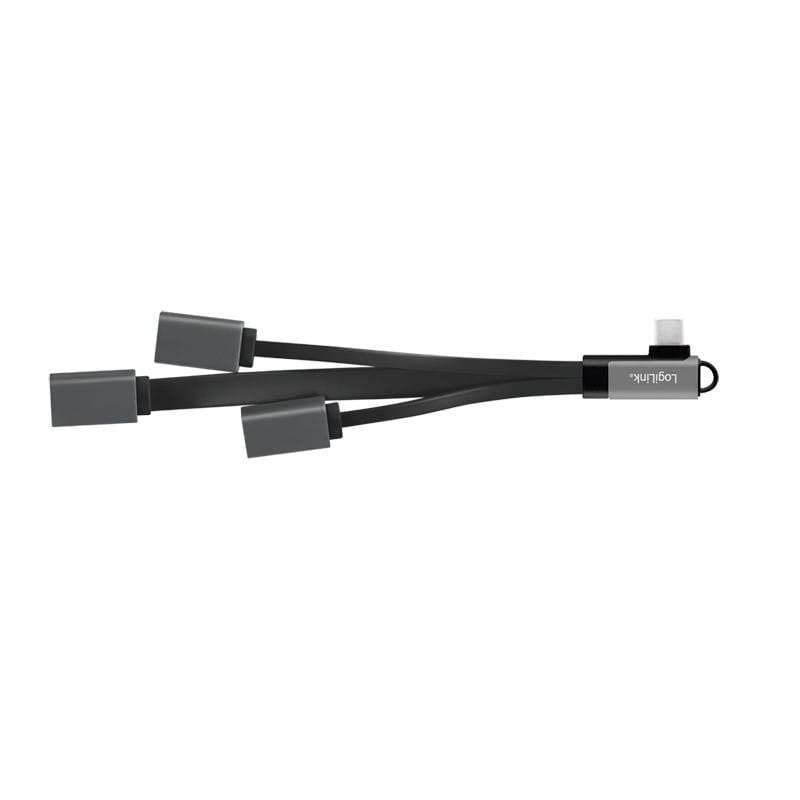 LogiLink Hub USB 3.2, USB-C/M 90, do 3xUSB-A/F, 0.15m
