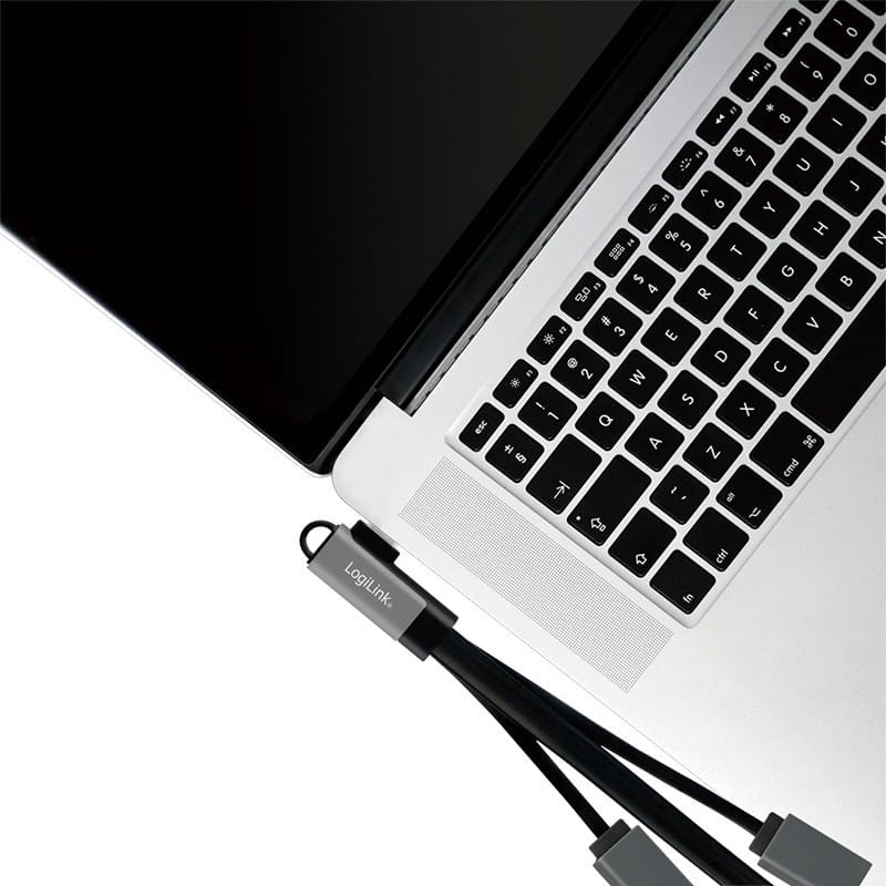 Pozostałe parametry: Złącze 1: USB-C 90°/wtyczka Złącze 2: 2x USB 2.0 A/Jack + USB 3.0 A/Jack Obsługuje Plug and Play: nie wymaga dodatkowego sterownika Szybkość transmisji danych: zasilacz do 5 V, 0,9 A, 4,5 W (USB 3.0) Szybkość transmisji danych: do 480 Mbit/s, Zasilanie: do 5 V, 0,5 A, 2,5 W (USB 2.0) Wersja z kablem płaskim Ekranowany Obudowa aluminiowa