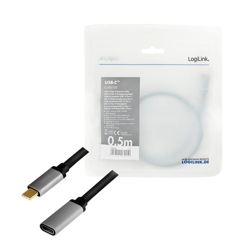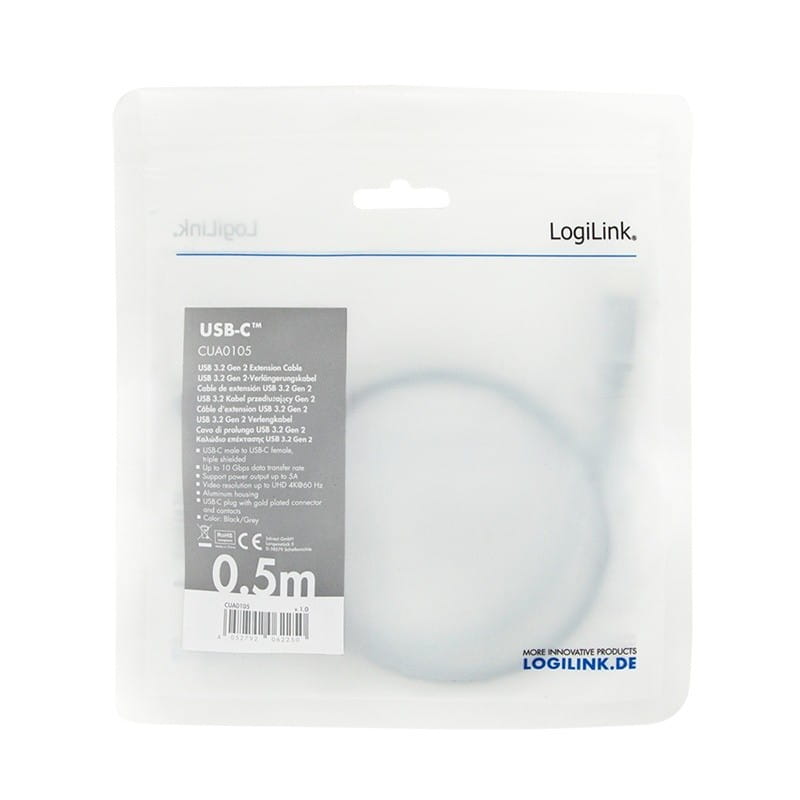 LogiLink Kabel USB-C M/F,4K/60Hz aluminiowy 0.5m