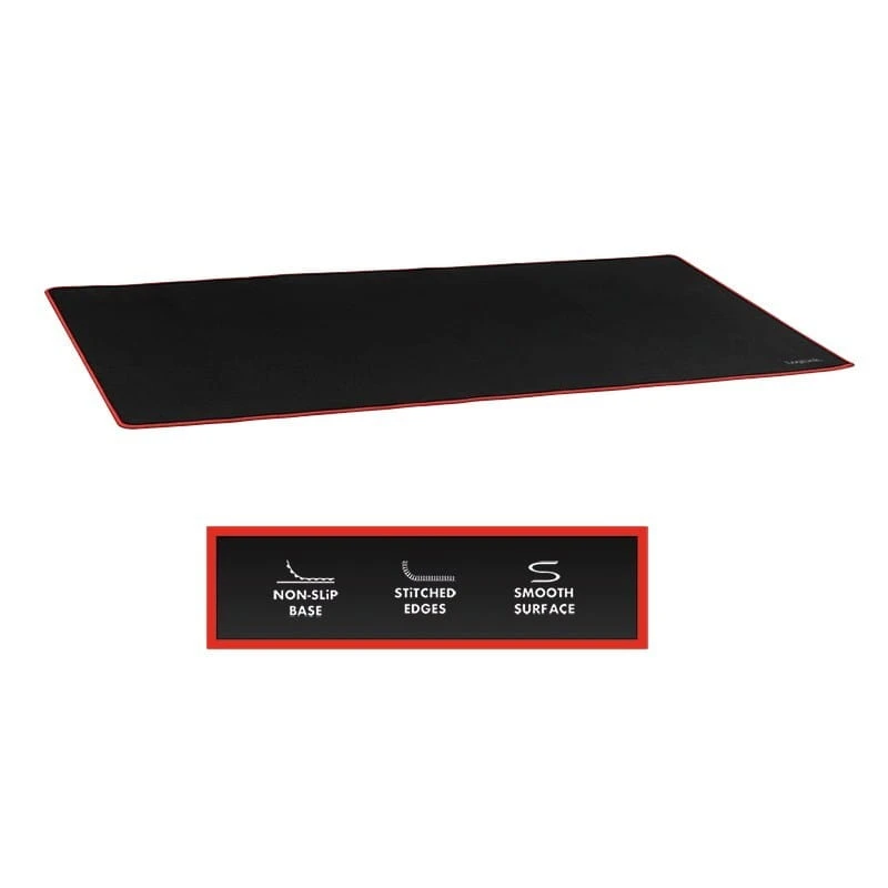 Pozostałe parametry: Bardzo duża podkładka pod mysz pokrywa całe biurko, w zależności od jego rozmiaru, oferując mnóstwo miejsca dla rąk, myszy i klawiatury. Bardzo gładka powierzchnia wykonana z ultradrobnej tkaniny dla szybszych i bardziej precyzyjnych ruchów myszy. Odpowiednia zarówno dla myszy optycznych, jak i laserowych. Antypoślizgowy spód wykonany z wulkanizowanej gumy. Solidne, obszywane krawędzie. Brak strzępienia dla ekstremalnej trwałości. Materiał: tkanina Mutispandex, wulkanizowana guma.