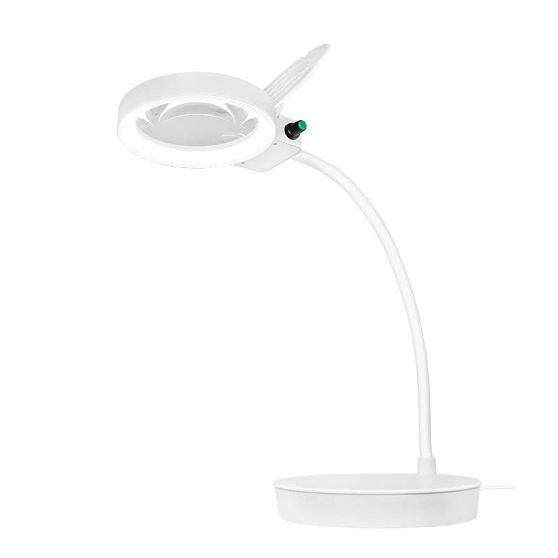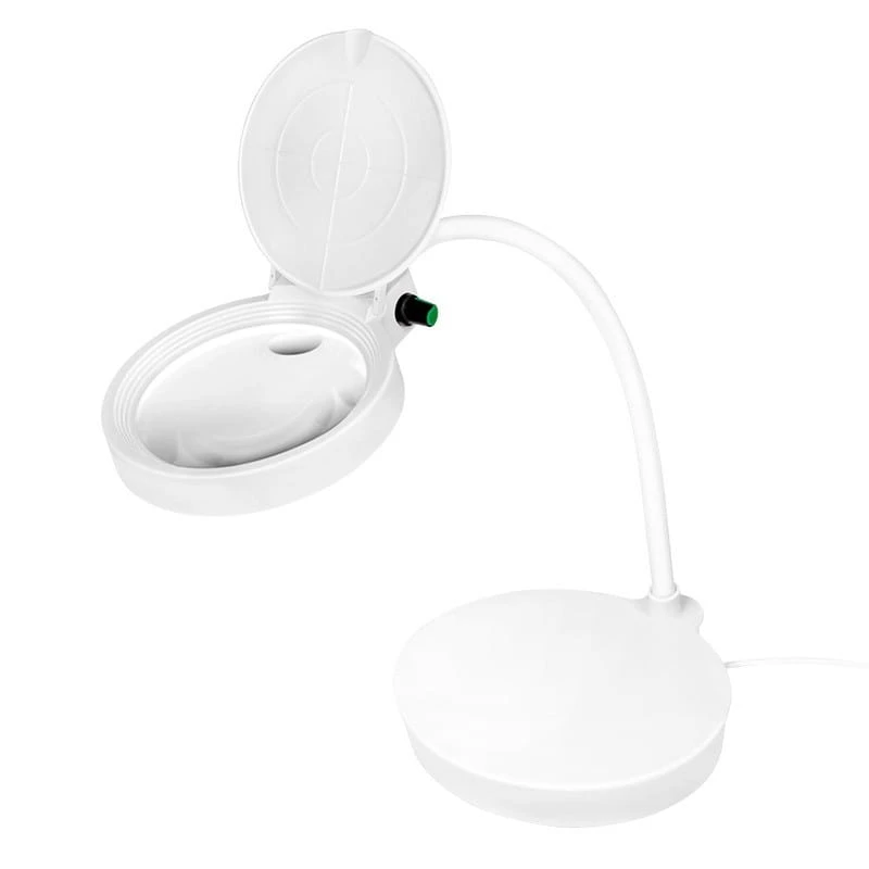 Pozostałe parametry: Szkło powiększające z podstawką i ściemnianym światłem Uwolnij swoje ręce podczas pracy/czytania Wysokiej jakości soczewka z powiększeniem 200% (8 dioptrii) i 900% (32 dioptrii) Stabilne i niezawodne światło, bez migotania i bez wpływu na wzrok Soczewka lampy powiększającej: 10 cm Elastyczna szyjka gęsia pozwala na ustawienie soczewki pod dowolnym kątem Pokrywa soczewki chroni przed kurzem i zarysowaniami, gdy nie jest używana Temperatura barwowa: 6800K Strumień świetlny: 400 lm Długość kabla: 1.4 m