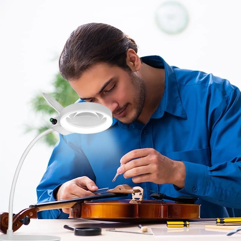 Uwolnij swoje ręce podczas pracy/czytania Potężna lampa powiększająca posiada wysokiej jakości soczewkę z 200% (8 dioptrii) i 900% (36 dioptrii) powiększeniem, która pomoże ci zobaczyć małe szczegóły bez trudności. Elastyczny szyjka gęsia pozwala na ustawienie soczewki pod dowolnym kątem, dzięki czemu obie ręce pozostają wolne do pracy lub czytania.