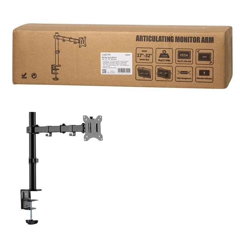 Pozostałe parametry: Typ mocowania: klamra stołowa W pełni regulowana wysokość: optymalna pozycja ergonomiczna Zarządzanie kablami: elegancko ukrywa wszystkie kable podłączone do monitora