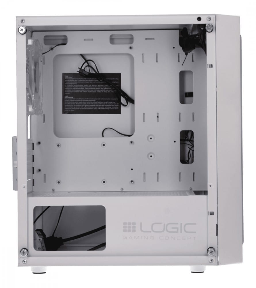Jak przystało na obudowę do komputerów gamingowych, Logic Atos posiada hartowane szkło z boku obudowy. Celowo zostało ono ograniczone wyłącznie do panelu bocznego, na rzecz przewiewnego panelu frontowego.