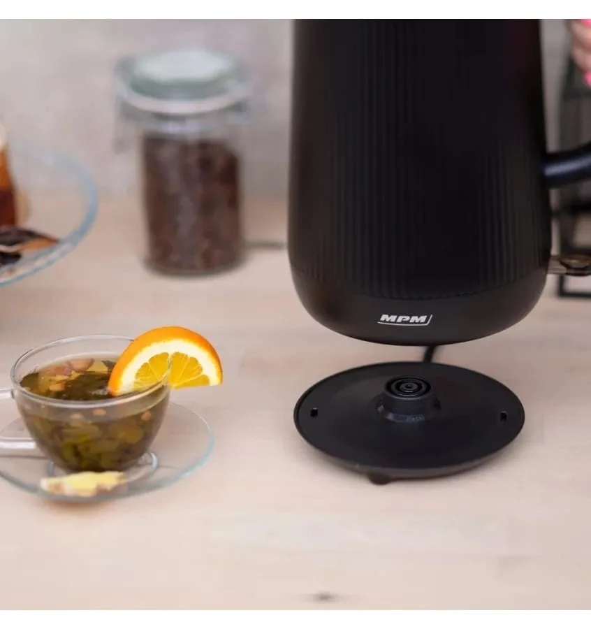 Lubisz delektować się smakiem aromatycznej kawy, gorącej herbaty lub zdrowych ziół? Poznaj czajnik bezprzewodowy MCZ115/C o podwójnych ściankach, który błyskawicznie gotuje wodę i dłużej niż standardowe czajniki utrzymuje jej temperaturę. Tłoczony wewnętrzny dzbanek czajnika o pojemności 1,5l jest wykonany z wysokiej jakości stali nierdzewnej o jednolitej konstrukcji, co oznacza, że eliminuje problemy z rozszczelnieniem, a przygotowane napary zachwycą naturalnym smakiem. Wewnątrz urządzenia znajduje się wskaźnik poziomu wody z podziałką, dzięki czemu idealnie odmierzysz ilość wody do zagotowania. Obudowa wykonana z ryflowanego plastiku i czarny elegancki kolor czajnika sprawią, że staje się on także designerskim dodatkiem do Twojej kuchni.