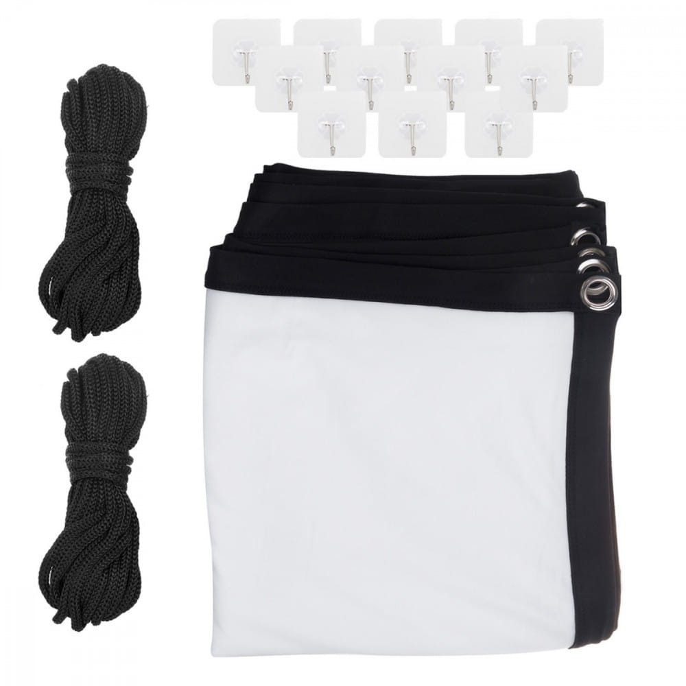 Ekran został zaprojektowany z myślą o maksymalnej wygodzie użytkowania. Montaż jest niezwykle prosty i szybki wystarczy zawiesić ekran na dołączonych haczykach samoprzylepnych lub zamocować go za pomocą linek. Dzięki tej elastyczności instalacji, ekran idealnie sprawdzi się zarówno w domu, jak i w biurze, sali konferencyjnej, szkole czy nawet podczas plenerowych pokazów.