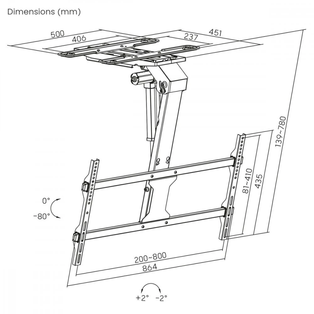 Dzięki elektrycznemu napędowi oraz cichemu silnikowi uchwyt działa niezwykle płynnie, co zwiększa komfort użytkowania, zwłaszcza w domowym salonie, sali konferencyjnej czy pokoju hotelowym. Regulacja kąta nachylenia do -80° umożliwia wygodne opuszczenie telewizora do pozycji idealnej do oglądania nawet jeśli zamontowany jest wysoko pod sufitem. Całość można kontrolować za pomocą dołączonego pilota zdalnego sterowania lub przy użyciu popularnej aplikacji Tuya, co pozwala na integrację z inteligentnym systemem domu.