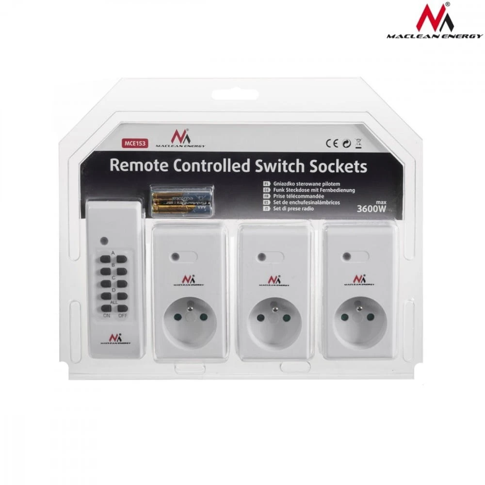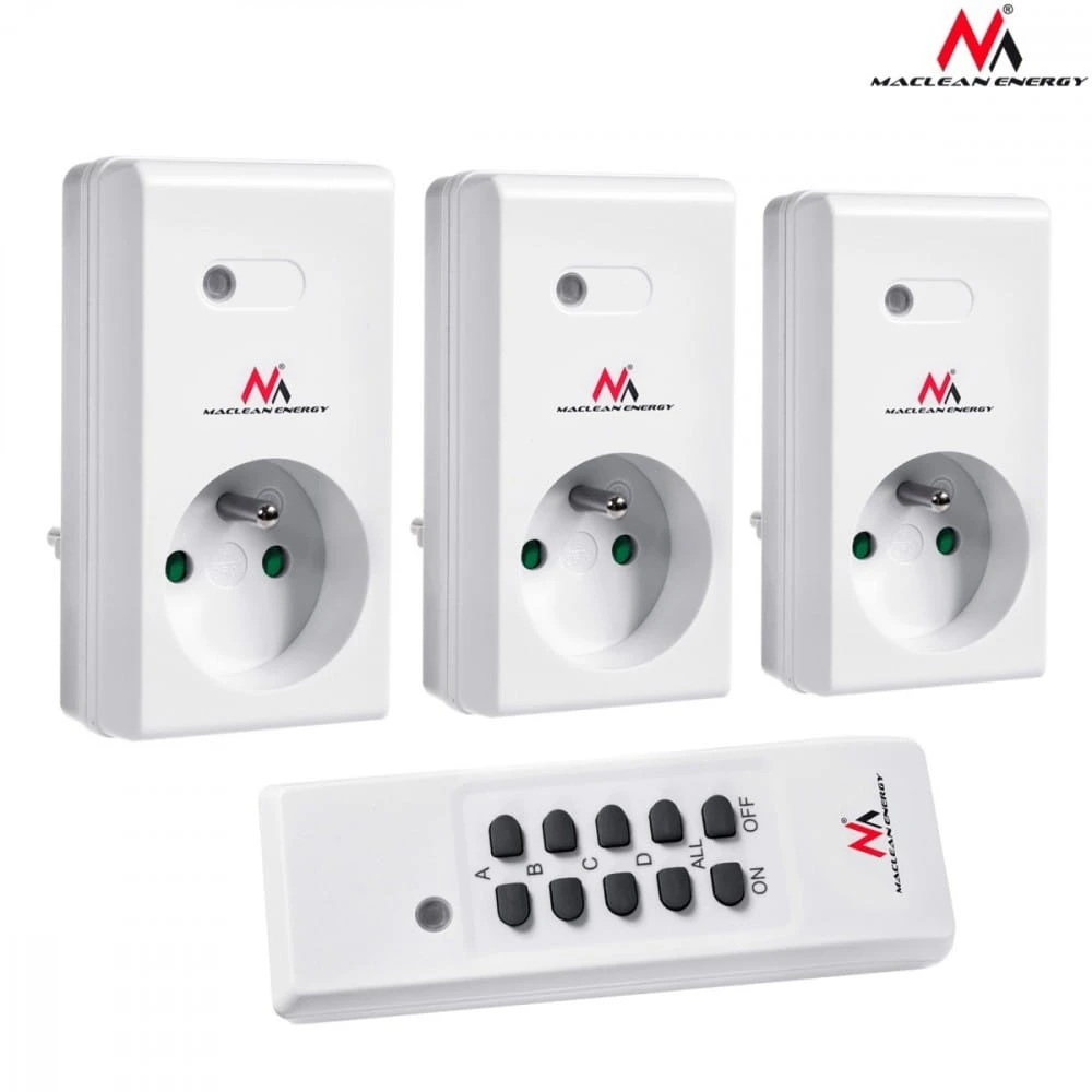 Gniazdka sieciowe wewnętrzne sterowane pilotem Maclean Energy MCE153 3szt. - programowalne + bateria do pilota