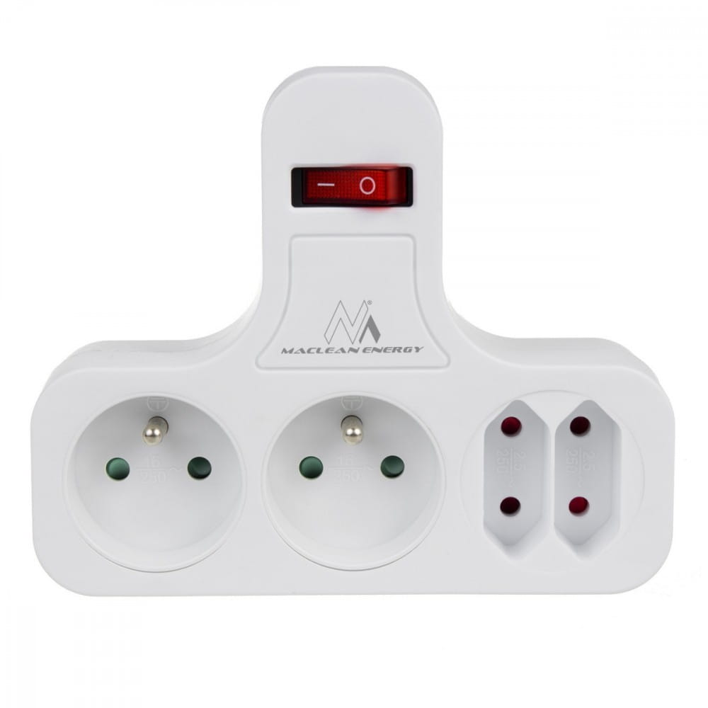 Gniazdko prądowe Maclean, Poczwórne z wyłącznikiem, Nóżką stabilizującą, Typu E, 2x2,5A, 2x16A, MCE224