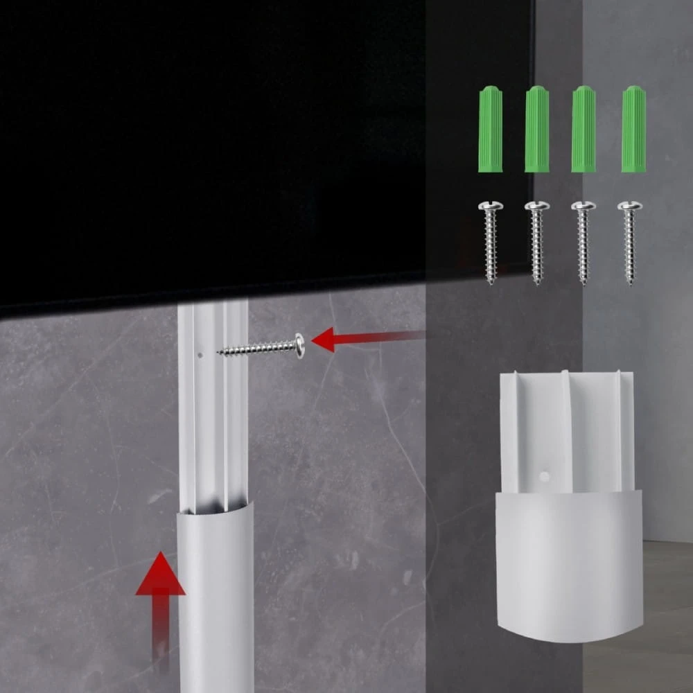 Listwa jest dwuelementowa, co oznacza, że składa się z podstawy montażowej oraz nakładki maskującej. Umożliwia to szybki i wygodny dostęp do kabli, np. w celu ich wymiany lub konserwacji. Listwę można zamocować za pomocą samoprzylepnego paska, co jest idealnym rozwiązaniem do szybkiej i bezinwazyjnej instalacji na gładkich powierzchniach, lub za pomocą dołączonych kołków i wkrętów zapewniając stabilność nawet przy większym obciążeniu lub na trudniejszych podłożach.