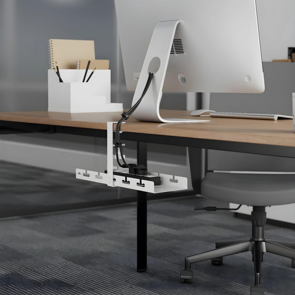 Zadbaj o porządek w przestrzeni roboczej dzięki organizerowi montowanemu pod biurkiem. Ten praktyczny uchwyt o długości 40 cm pozwala w prosty sposób uporządkować przewody oraz zamontować listwę zasilającą bez konieczności wiercenia czy trwałej ingerencji w mebel. Dzięki zaciskowemu systemowi montażu można go łatwo przymocować do blatu, a w razie potrzeby również szybko zdemontować lub przemieścić. Organizer idealnie sprawdzi się w domowym biurze, pokoju gracza czy miejscu pracy, gdzie estetyka i funkcjonalność mają znaczenie.