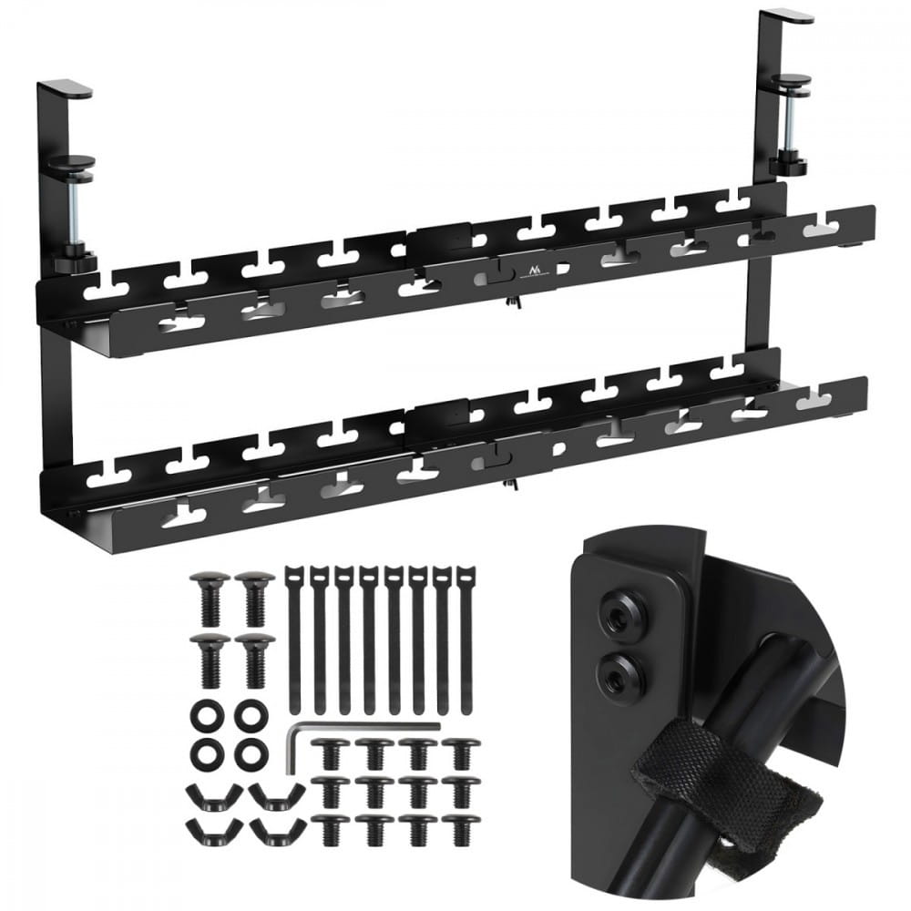 Akcesoria w zestawie: Organizer podbiurkowy na kable Maclean MC-102 B Opaski kablowe na rzep (8 sztuk) Akcesoria montażowe Opakowanie producenta