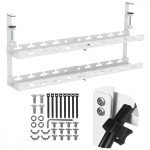 Dwupoziomowy organizer na listwę kablową montowany pod biurkiem to idealne rozwiązanie dla osób, które potrzebują więcej przestrzeni na uporządkowanie przewodów i sprzętu zasilającego. Dzięki regulowanej długości od 433 do 728 mm możesz łatwo dopasować go do różnych rozmiarów blatów i długości listew. Dwa poziomy uchwytów pozwalają na jednoczesne zamocowanie dwóch listw zasilających lub dodatkowych urządzeń, takich jak zasilacze, huby USB czy routery. Zaciskowy system montażu sprawia, że instalacja jest szybka i bezinwazyjna nie wymaga wiercenia ani naruszania powierzchni mebla.