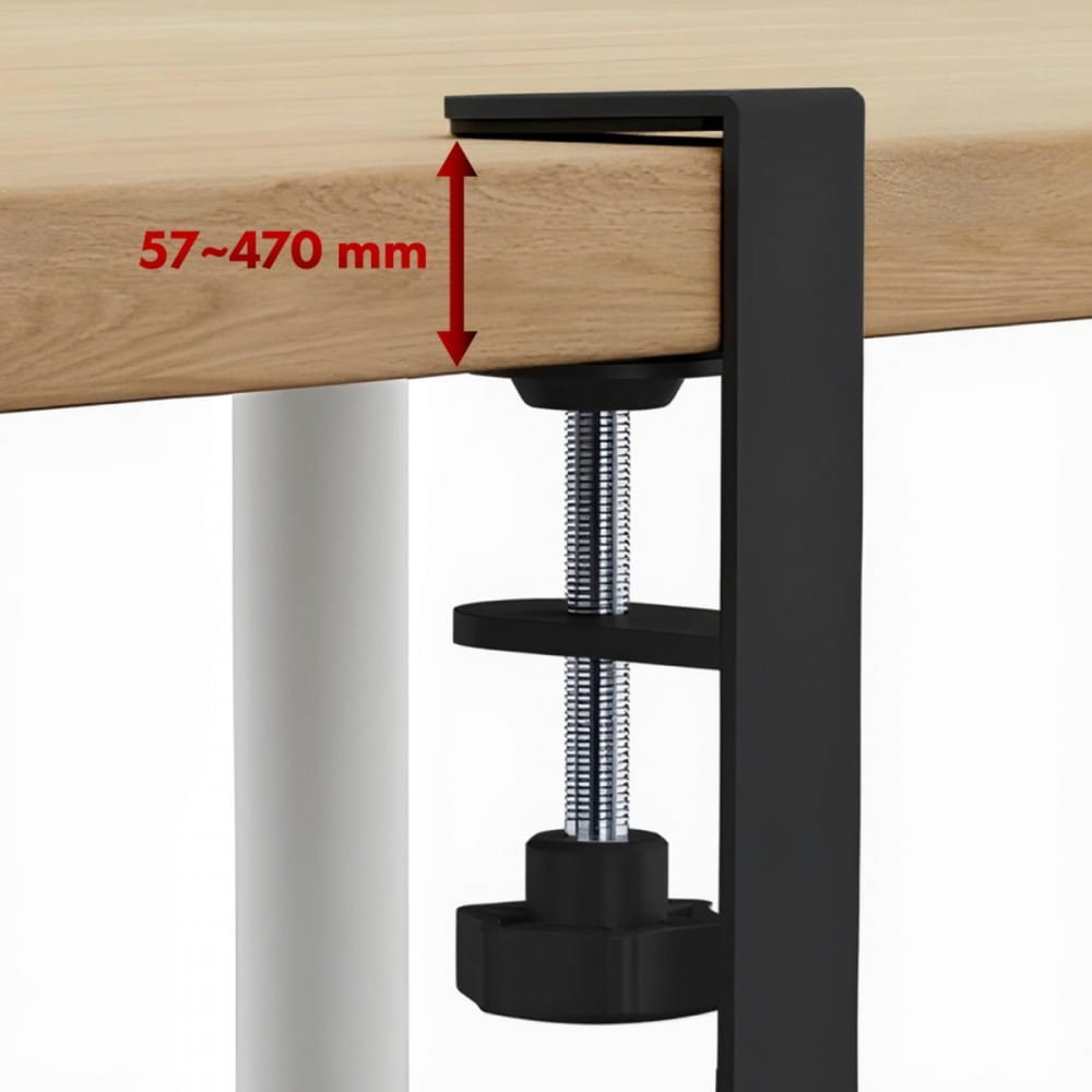 Pozostałe parametry: Producent: Maclean Model: MC-104 B Materiały wykonania: stal malowana proszkowo, ABS Odległość między poziomami: 145 mm Montaż: zacisk do blatu Pasuje do blatów o grubości: od 5 do 50 mm