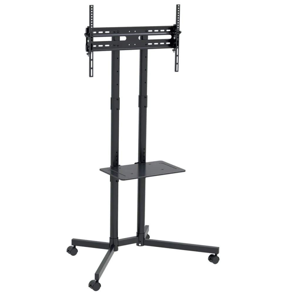 Stand charakteryzuje się praktyczna konstrukcją, bardzo prostym montażem oraz bardzo szeroką gamą telewizorów które możemy na nim zamocować. Wbudowana regulowana dolna półka umożliwia montaż opcjonalnych akcesoriów takich jak DVD, amplituner, tablet, laptop, konsolę itp. Stand wyposażony został również w cztery kółka, dzięki którym z łatwością można przemieszczać cały zestaw w dowolne miejsce. Do zestawu dołączone są śruby, niezbędne do prawidłowego montażu oraz obrazkowa instrukcja montażu. Idealny do salek konferencyjnych, na lotniska, wyświetlaczy publicznych lub innych profesjonalnych prezentacji.