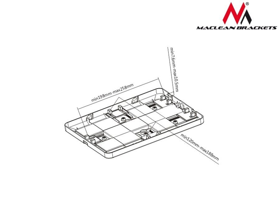 Stand stojak na tablet tab stand kiosk jest kompatybilny z iPad, Galaxy TAB, Goclever lub innymi tabletami o wymiarach (od 198 x 120 x 7.6 mm do 258 x 188 x 10.5 mm).