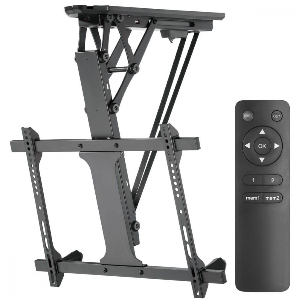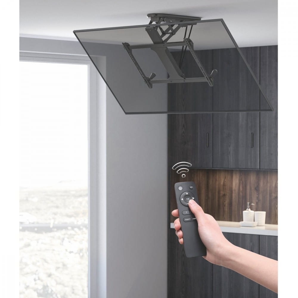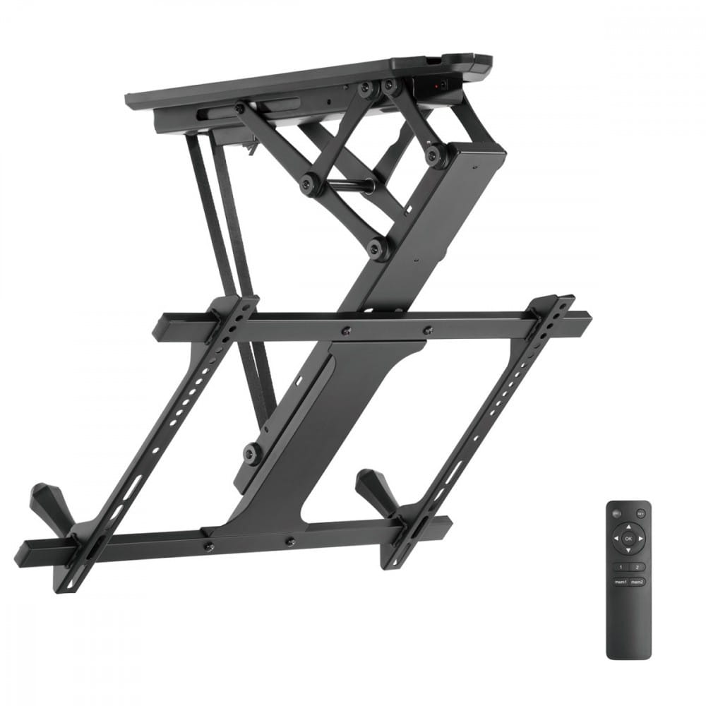 Pozostałe parametry: Elektryczny uchwyt do telewizorów o przekątnej ekranu 32 - 70" Montaż do sufitów płaskich i pochyłych - Maksymalne obciążenie: aż 35 kg Minimalny/Maksymalny rozstaw w poziomie: 200/600 mm Minimalny/Maksymalny rozstaw w pionie: 100/400 mm Solidna, metalowa konstrukcja, bardzo łatwy montaż Pilot zdalnego sterowania z pamięcią dwóch wybranych pozycji Wysoka jakość wykonania Lakierowanie proszkowe - VESA: 200x100, 200x200, 200x400, 300x200, 300x300, 400x200, 400x300, 400x400, 600x400 mm