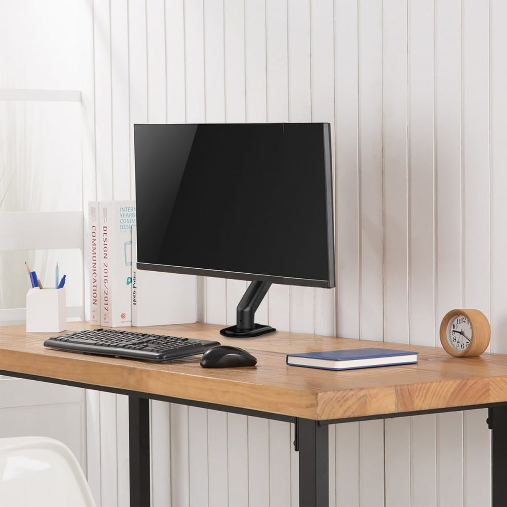 Uniwersalny uchwyt do monitorów LCD lub LED montowany do blatu biurka lub stołu. Przeznaczony do monitorów od 13" do 27" o maksymalnej wadze do 8 kg. Uchwyt MC-860N optymalizuje ergonomię oraz widoczność, poprzez regulację kąta nachylenia, obrotu, wysokości etc. Takie rozwiązanie wpływa korzystnie na komfort pracy, a także pomaga w zapobieganiu bólowi szyi, pleców i zmęczeniu wzroku. Przelotki na przewody pomagają w prowadzeniu kabli w uporządkowany sposób. Dzięki temu zmniejsza się bałagan na biurku, co przekłada się na bardziej schludny wygląd i bardziej zorganizowane miejsce pracy.