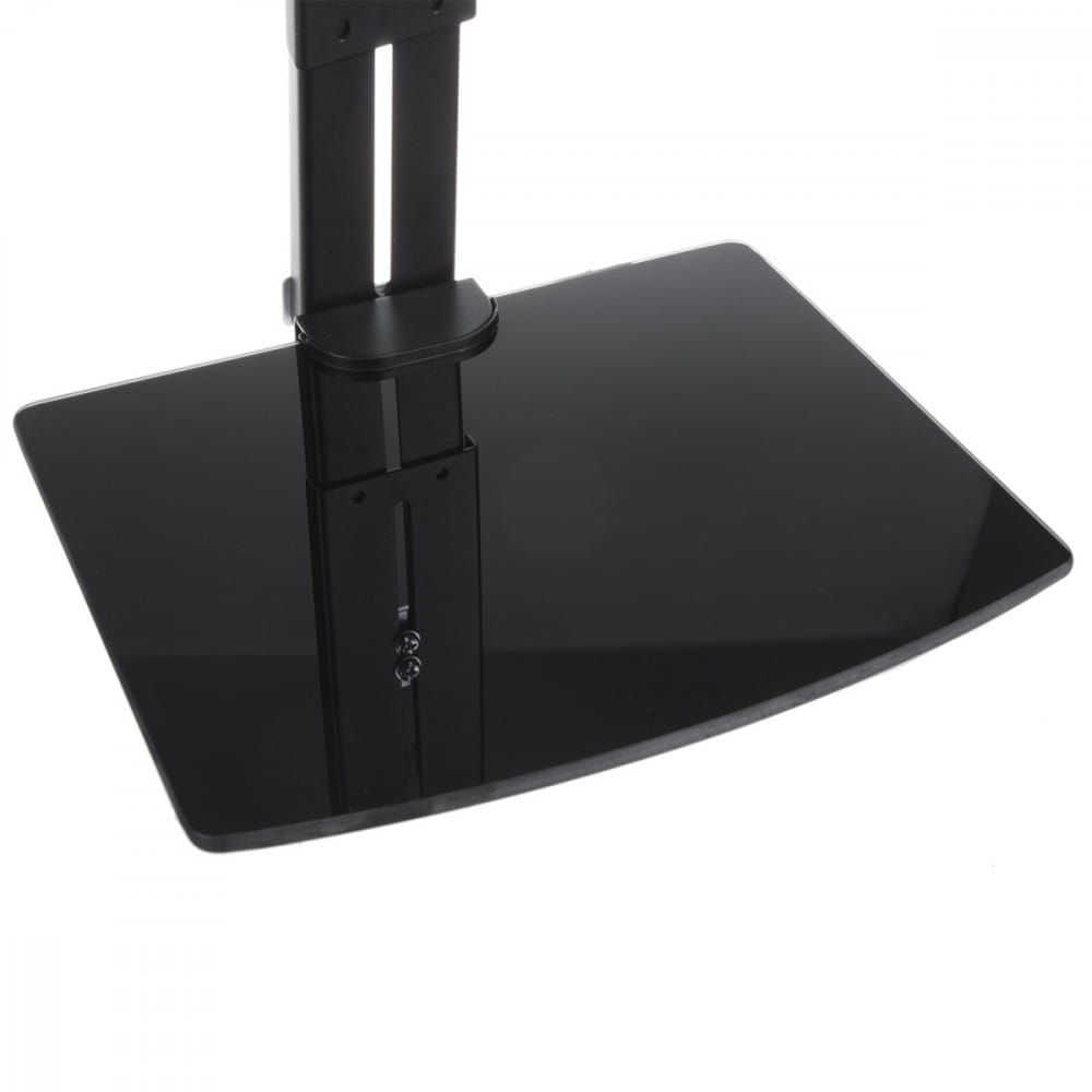 Wymiary: Maksymalne obciążenie: 20 kg Możliwość regulacji stopnia nachylenia: od +15° do -5° Minimalny/Maksymalny rozstaw w poziomie: 75/200 mm Minimalny/Maksymalny rozstaw w pionie: 75/200 mm Odległość telewizora od ściany: 60 mm Solidna, metalowa konstrukcja, bardzo łatwy montaż Wysoka jakość wykonania Lakierowanie proszkowe (kolor czarny) Wbudowana szklana półka z regulacją wysokości 272-418 mm Wymiary półki: 250x200 mm Maksymalne obciążenie półki: 5 kg VESA: 75x75, 100x100, 100x200, 200x200 mm