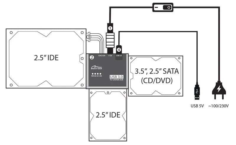 Media-Tech Przejściówka SATA/IDE to USB connection kit MT5100