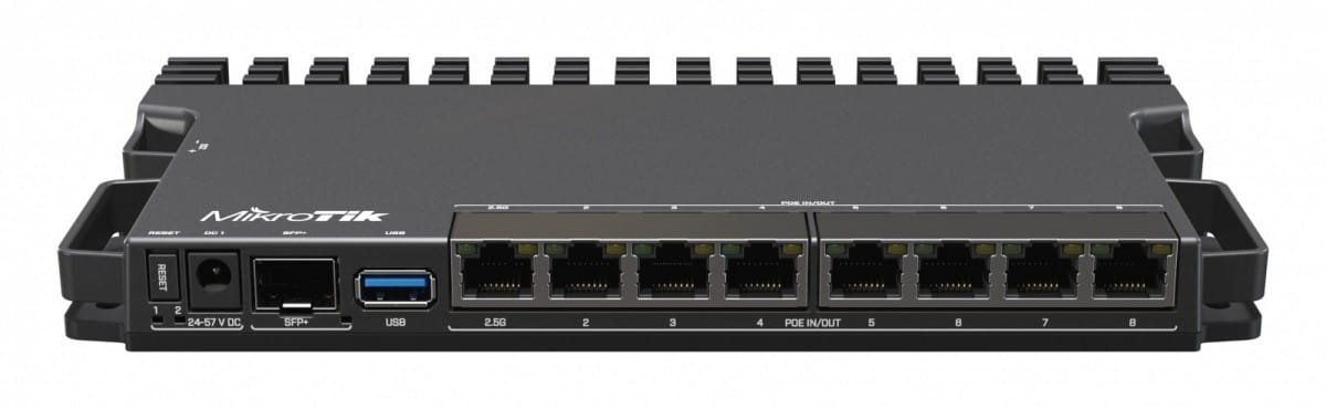 Ta wersja modelu RB5009 posiada wszystkie możliwe dodatki poprzedniego modelu: Ethernet Gigabit, Ethernet 2,5 Gigabit oraz klatkę 10 Gigabit SFP+ dla łączności światłowodowej. Ma prędkość, moc i trwałość. Tym razem dodaliśmy także funkcje PoE-in i PoE-out we wszystkich ośmiu portach Ethernet. Wszystkie opcje zasilania obsługują szeroki zakres napięć od 24 do 57 V. Każdy port PoE-out może dostarczyć do 25 W mocy. Łączna moc wszystkich portów jest ograniczona do 130 W, co powinno wystarczyć dla większości konfiguracji. W razie potrzeby można ręcznie określić maksymalną dostępną moc z źródeł zasilania. Jeśli chodzi o funkcje PoE-out, nowy model RB5009 może konkurować z naszymi legendarnymi przełącznikami PoE: CRS354 i CRS328. W najmniejszym możliwym formacie i w najlepszej cenie na rynku!