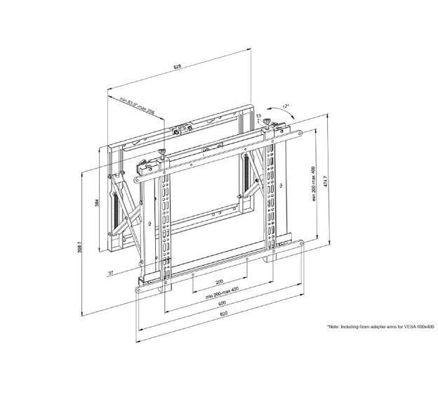 WL95-800BL1 ma głębokość 7,8-26 cm i nadaje się do ekranów zgodnych z VESA o wymiarach otworów 200x200 do 600x400 mm (poziomo) lub 400x600 mm (portret) . wstępnie zmontowany i wyposażony w otwory na dziurki od klucza, aby zapewnić szybką i łatwą instalację.
