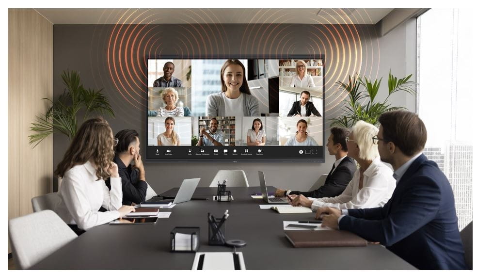 Uruchom Whiteboard, po prostu podnosząc pióro z obudowy i ciesz się funkcjami, takimi jak Magic Draw - narzędzie do rozpoznawania kształtów, pióro z czułością nacisku, marker i wiele więcej! Stylowa i elegancka konstrukcja serii 53 obejmuje 8-megapikselowy mikrofon o odległości odbioru do 8 m, któremu towarzyszą 2 głośniki 18 W i 2 subwoofery 8 W, dzięki czemu jest to idealne rozwiązanie do bycia słyszanym w dużym otoczeniu bez potrzeby stosowania zewnętrznych głośników.