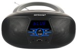 Pozostałe parametry: Bluetooth do odtwarzania muzyki poprzez profil audio streaming (A2DP) Gniazdo USB (obsługa urządzeń zewnętrznych o pamięci do 32 GB) Zasilanie bateryjne: 4 baterie R20 Zasilanie: 220-240 V ~ 50/60 Hz