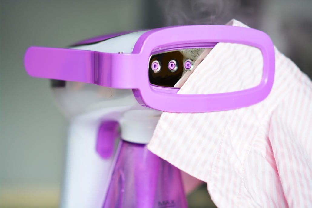 Urządzenie posiada 3-stopniową regulację strumienia pary, dzięki czemu można go regulować w zależności od rodzaju i stopnia zagniecenia prasowanej tkaniny. Strumieniem pary steruje się wciskając przycisk regulacji pary. Po włączeniu urządzenia strumień pary jest najmocniejszy i z każdym kolejnym przyciśnięciem jego intensywność się zmniejsza. Sygnalizuje to kolor diody - od zielonego, przez ciemnoniebieski, do jasnoniebieskiego. Moc na poziomie 1500 W zapewnia odpowiednio silny strumień pary, która dokładnie wyprasuje i odświeży garderobę.