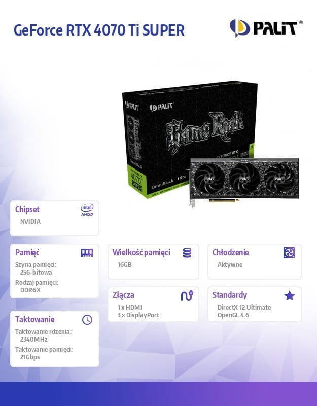 Palit Karta graficzna GeForce RTX 4070 Ti SUPER GAMER OCK OMNIBLACK 16GB 256b