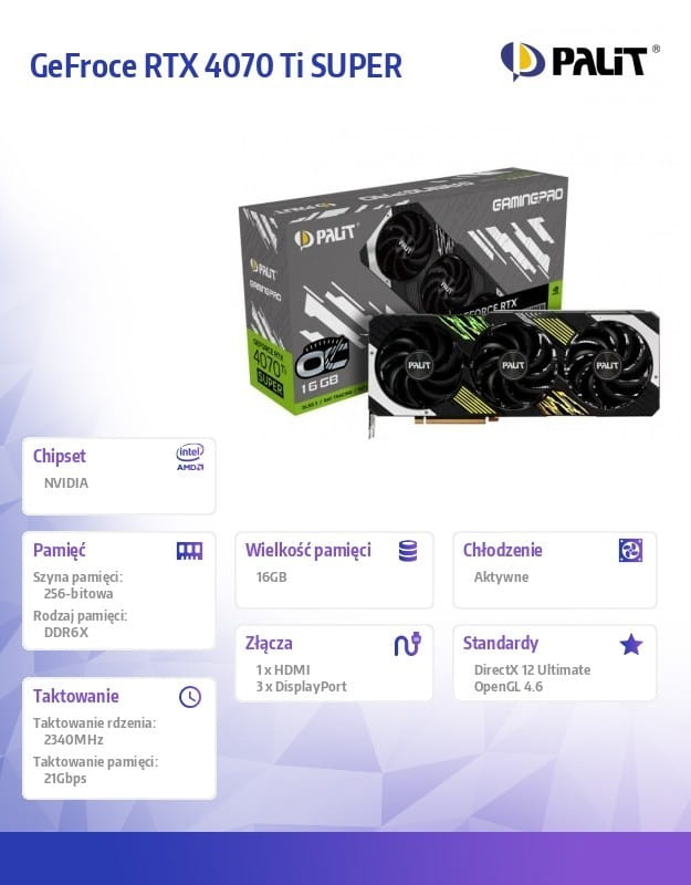 Palit Karta graficzna GeFroce RTX 4070 Ti SUPER GAMINGPRO 16GB GDDR6X 256bit