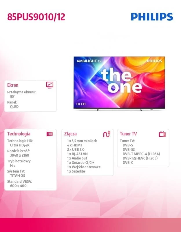 Philips Telewizor 85 cali LED 85PUS9010/12