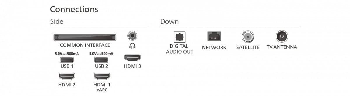 Gniazda we/wy: 1 x 3,5 mm minijack, 1 x RJ-45 LAN, 3 x HDMI, 2 x USB 2.0, 1 x Gniazdo CI/Cl+, 1 x SPDIF out, 1 x Wejście antenowe, 1 x Satellite