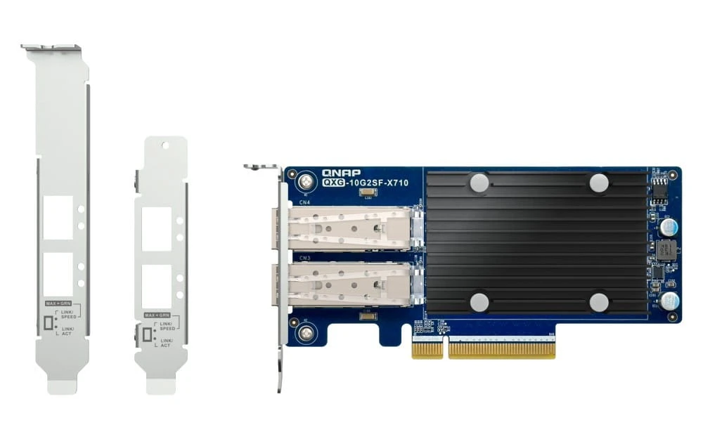 Karta sieciowa QXG-10G2SF-X710 10 GbE, wyposażona w dwa porty 10 GbE SFP+ (10G/1G), jest energooszczędna i przyjazna dla budżetu. Jest to idealne rozwiązanie dla zespołów, które potrzebują jednoczesnego dostępu do danych, dla fotografów/kamerzystów poszukujących możliwości szybkiej i płynnej transmisji danych lub dla aplikacji wirtualizacyjnych wrażliwych na opóźnienia.