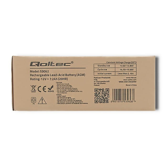 Qoltec Akumulator AGM 12V | 7.2Ah | max. 108A