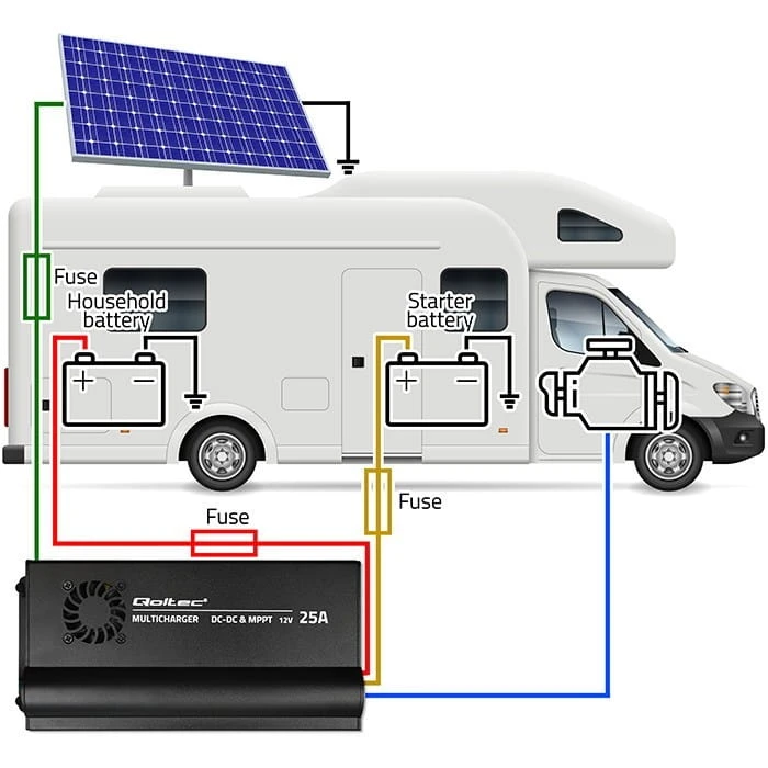 Qoltec Automatyczna Ładowarka DC-DC 12V z regulatorem MPPT | 25A | LiFePO4 AGM GEL STD