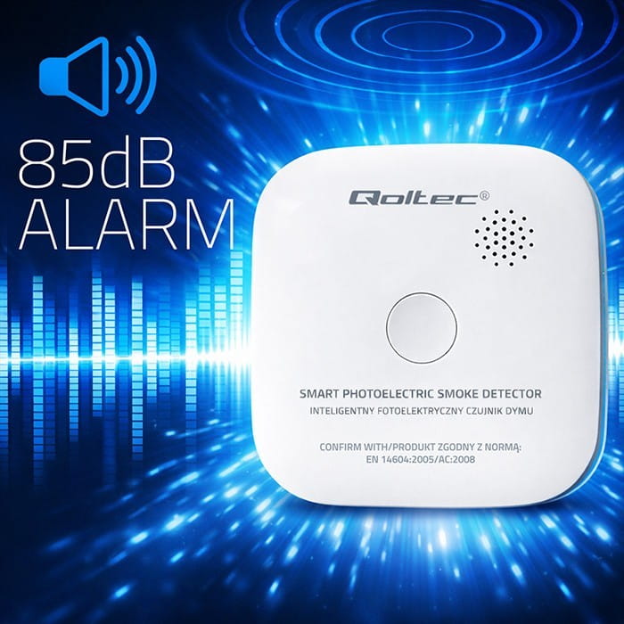 Qoltec Bezprzewodowy czujnik dymu z baterią | alarm 85dB | LED