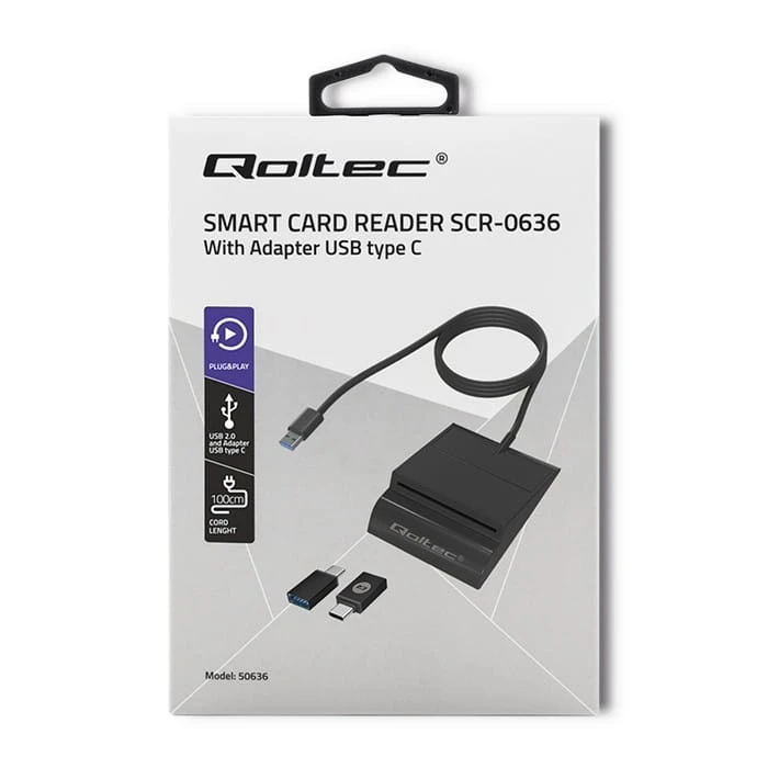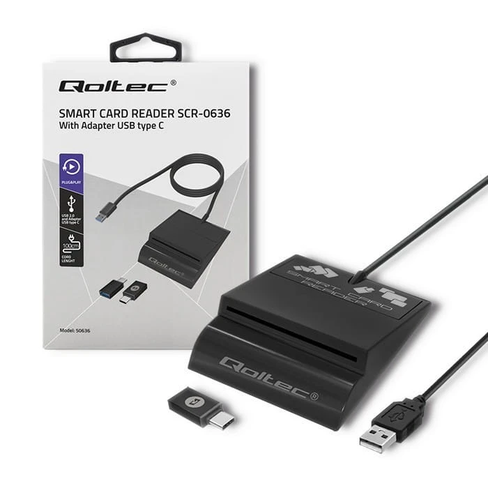 Qoltec Inteligentny czytnik chipowych kart ID SCR-0636 | USB typu C