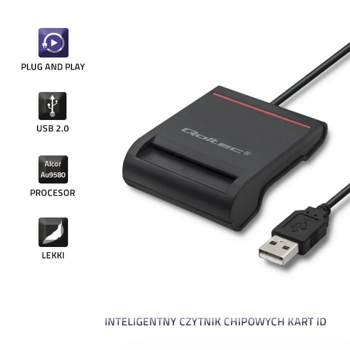 Qoltec Inteligentny czytnik chipowych kart ID | USB2.0 | Plug&play