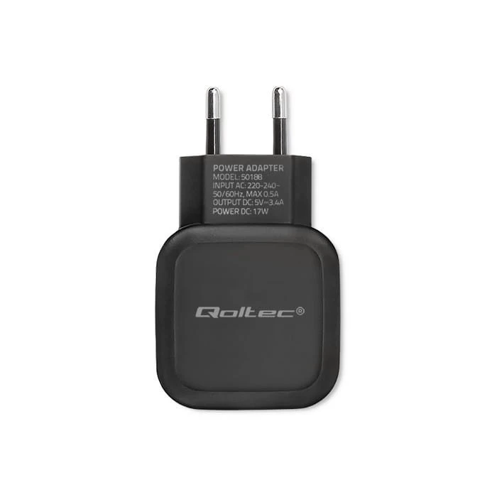 Qoltec Ładowarka sieciowa 17W | 5V | 3.4A | 2xUSB + kabel USB typC