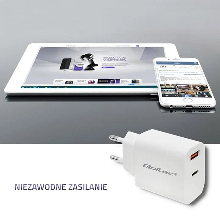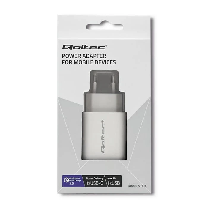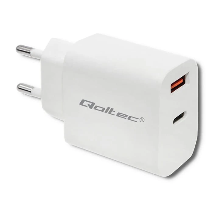 Qoltec Ładowarka sieciowa | 18W | 5-12V | 1.5-3A | USB typ C PD | USB QC 3.0 | Biała