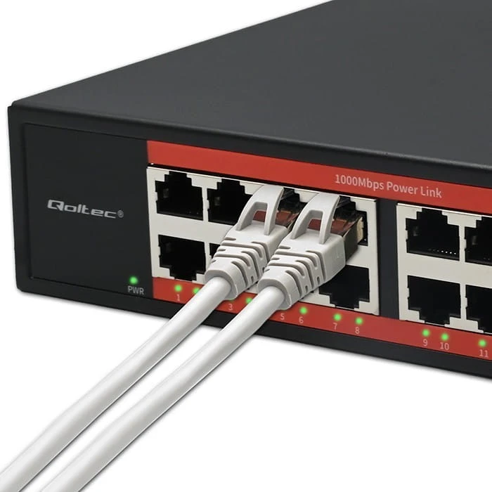 Qoltec Przełącznik sieciowy SWITCH Gigabit Ethernet PoE | 16x RJ45 | 2x SFP | 1000 Mb/s