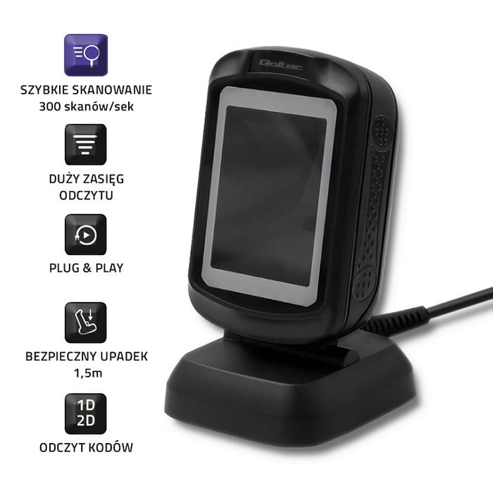 Qoltec Stacjonarny czytnik kodów kreskowych 1D i 2D | USB