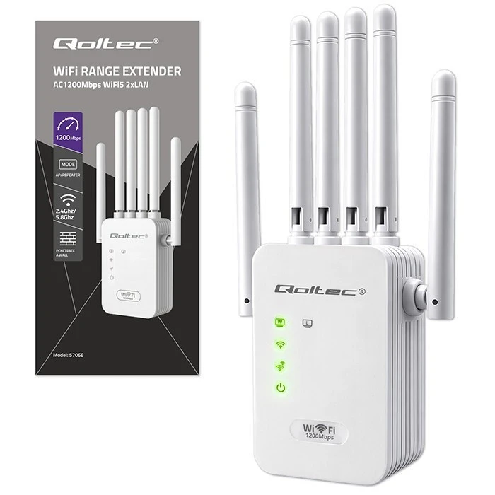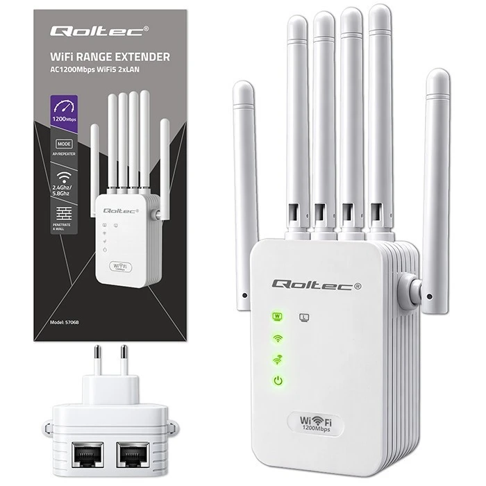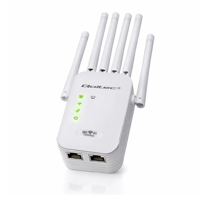 Qoltec Wzmacniacz syganłu WiFi 5 | Repeater | Access Point | AC1200 Mb/s| 6 anten | 2xRJ45 | 128MB