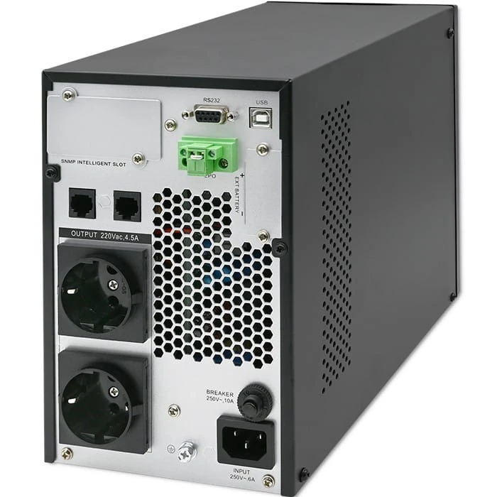 - możliwość montażu karty SNMP lub podłączenia adaptera SNMP to standard zarządzania siecią, dzięki któremu w szybki i prosty sposób zbierzesz informacje o podłączony urządzeniach, czy też skonfigurujesz ich parametry,
