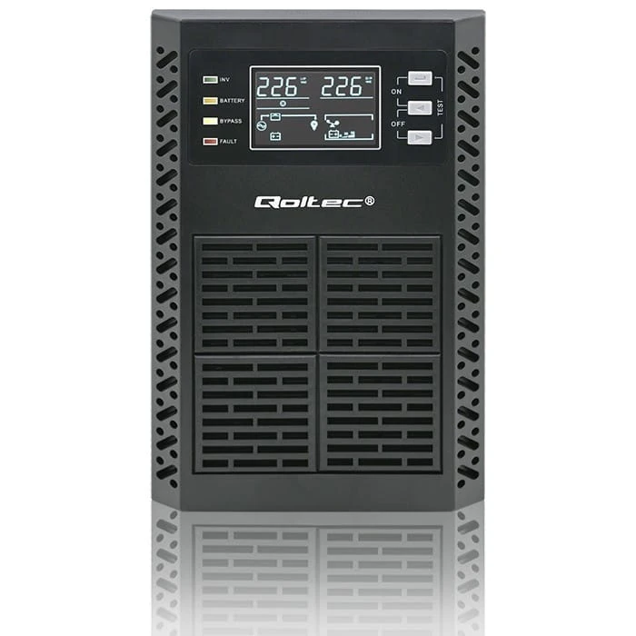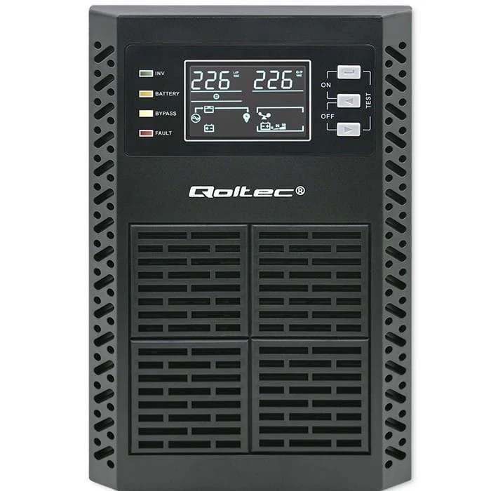Zasilacze UPS marki Qoltec to stabilna pozbawiona zakłóceń czysta energia o sinusoidalnym kształcie. To pełna ochrona twoich urządzeń, dzięki podwójnej konwersji, która najpierw przekształca prąd przemienny zasilania sieciowego na prąd stały, a następnie na prąd przemienny, co zapewnia najwyższy poziom jakości zasilania i zabezpiecza przez potencjalnymi zakłóceniami w sieci takimi jak spadki napięcia, zaniki energii, przepięcia i awarie.